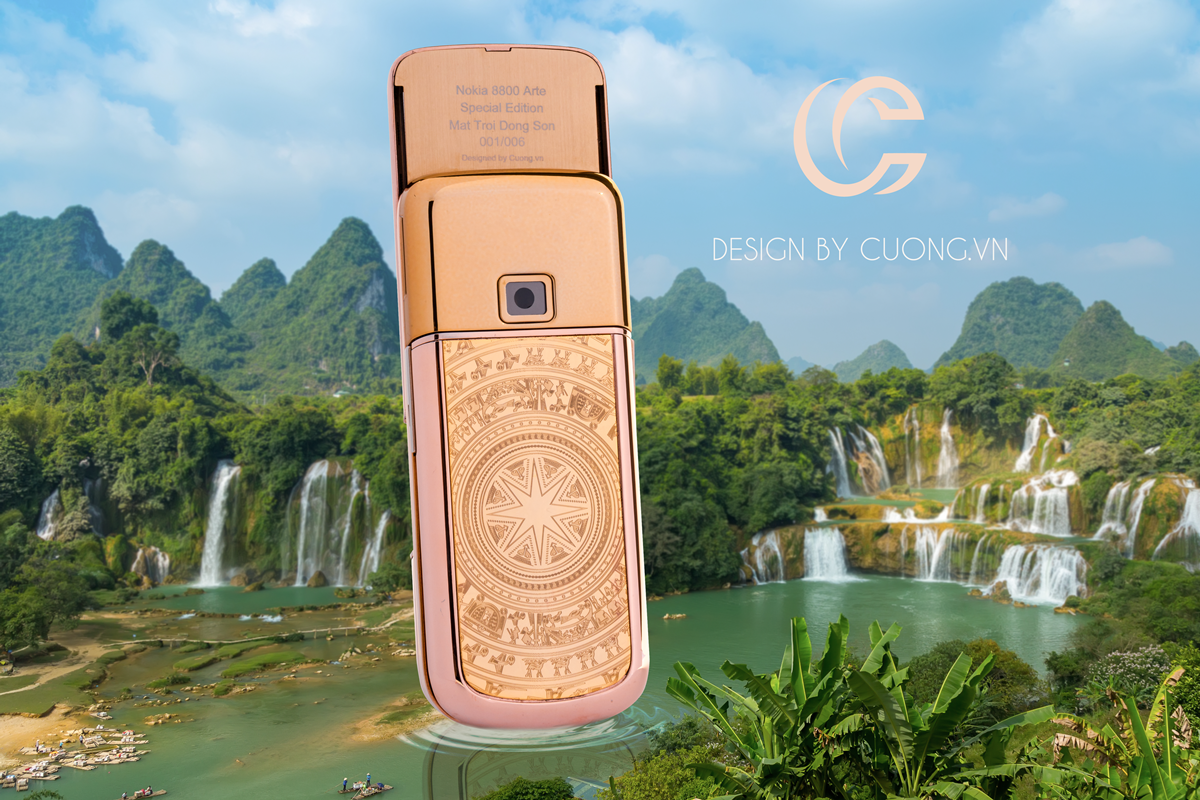 Bằng tình yêu, nỗi nhớ và tài năng của người con xa xứ kết hợp cùng kinh nghiệm, sự tận tâm, mong muốn mang đến cho khách hàng Việt những sản phẩm độc đáo, khác biệt, Cuong.vn giới thiệu đến bạn phiên bản giới hạn Nokia 8800 Mặt trời Đông Sơn.