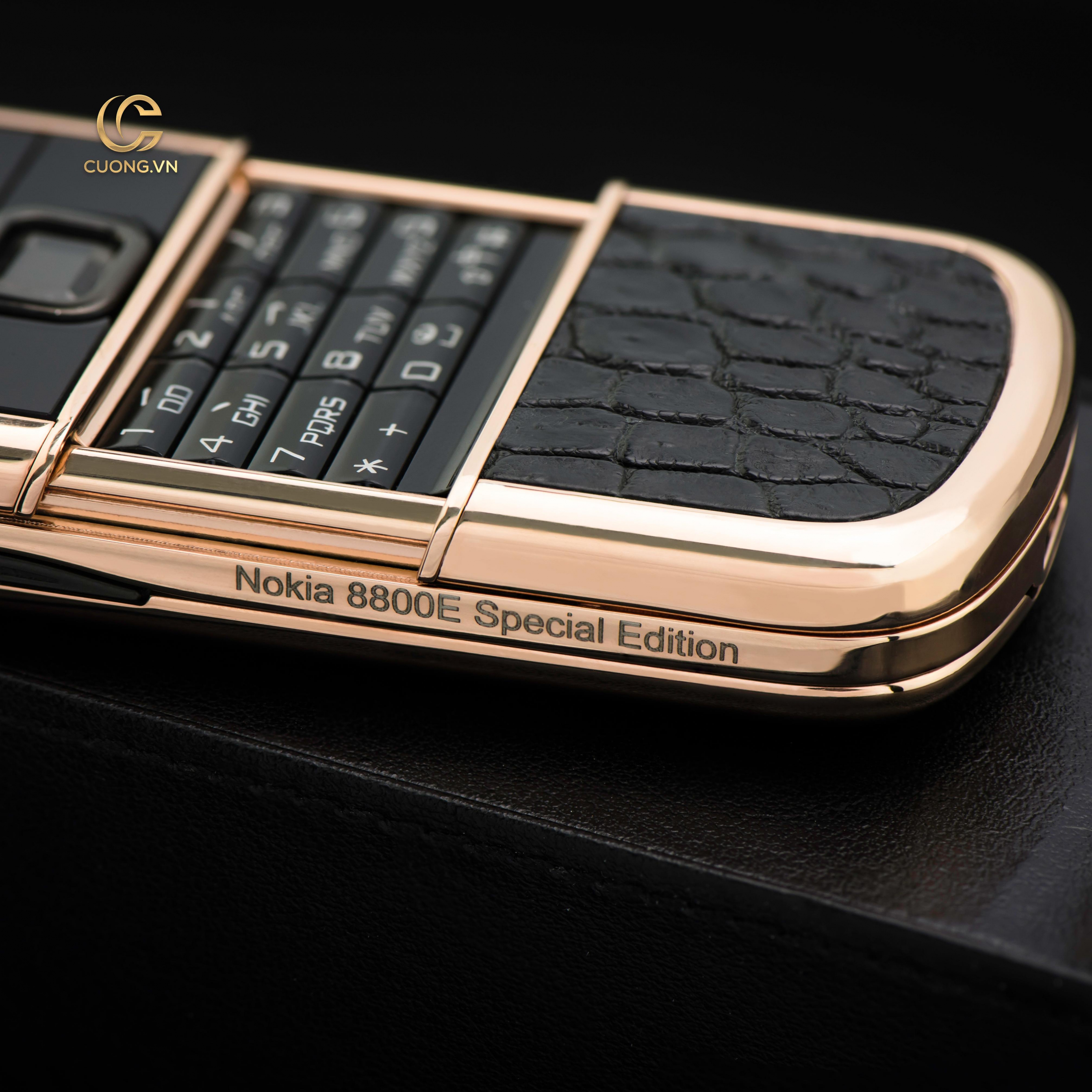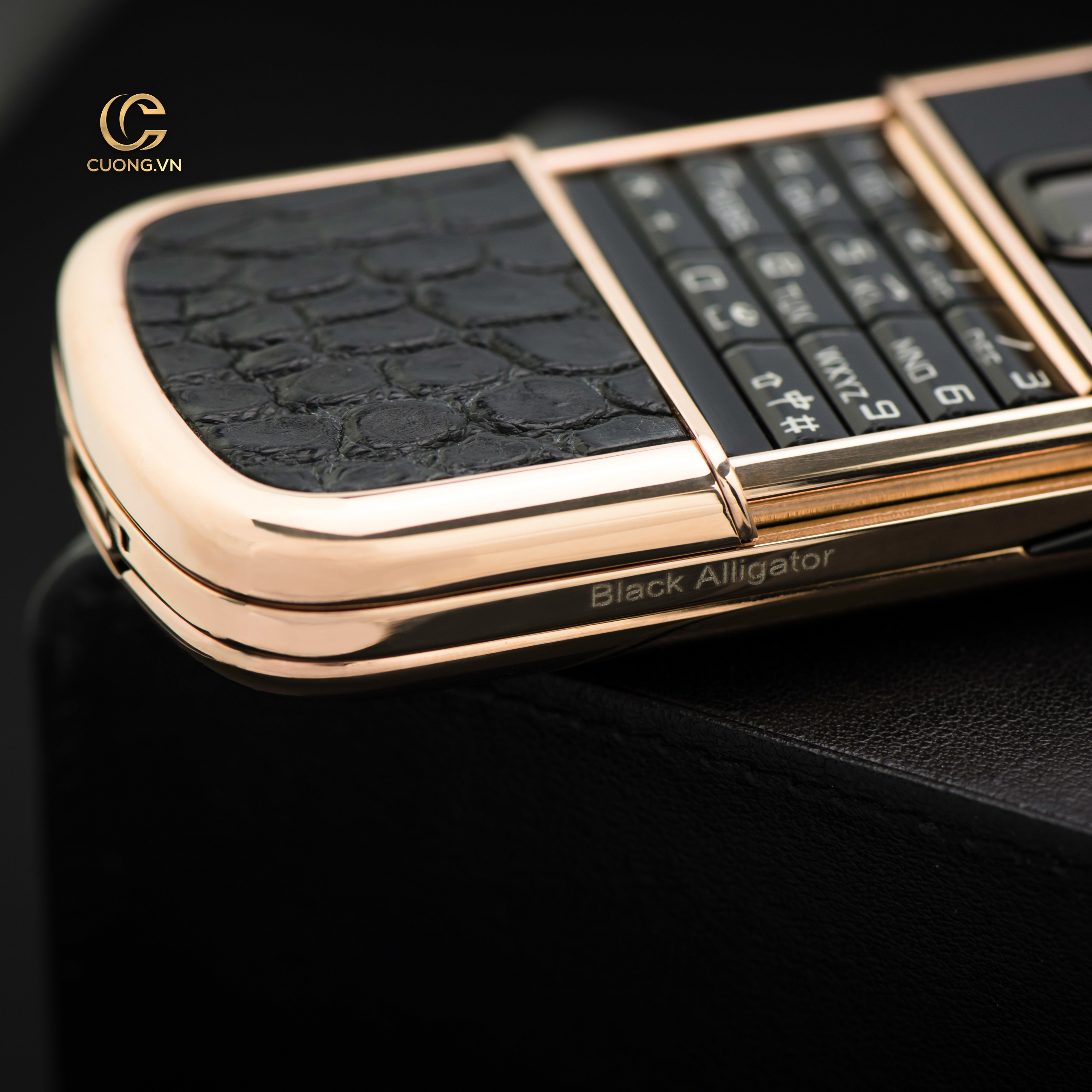 Người xưa thường xem cá sấu là biểu tượng cho sự trù phú, dồi dào của cải vật chất vì vậy thường thờ đầu cá sấu ở mỗi đầu sông. Với ý nghĩa đó và nguồn cảm hứng đại diện cho sự phồn thịnh và dư thừa vật chất Nokia 8800 Rose gold Black Alligator special Edition là chiếc điện thoại toát lên vẻ ngoài mạnh mẽ, bền bỉ và vô cùng "thần thái". Đặc biệt, sản phẩm còn được bọc da chất lượng làm bằng thép không gỉ mạ vàng hồng, chống trầy xước hiệu quả càng tạo cho vẻ ngoài của chiếc điện thoại trở nên hoàn hảo hơn.