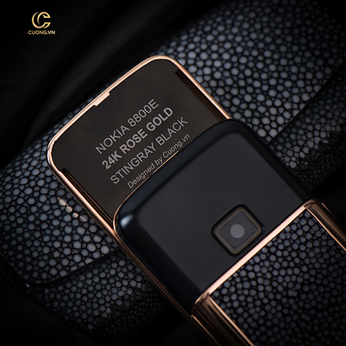 Nokia 8800E 24K Rose Gold Stingray Black có kiểu dáng thuộc loại “siêu thiết kế”. Mỗi góc cạnh đều được bố trí hợp lý, chế tác tỉ mỉ để mang lại hiệu quả nghệ thuật cao nhất. Kiến trúc tổng thể của Nokia 8800E giống như một mẫu trang sức hiện đại được chế tạo từ những chất liệu đắt tiền.